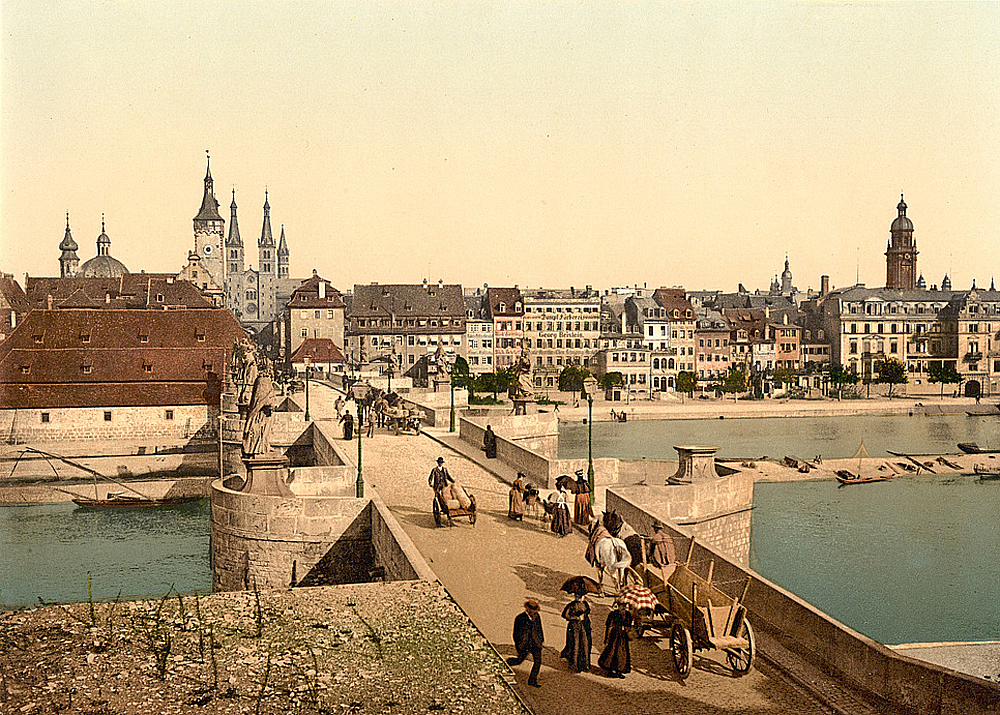 über die Mainbrücke auf Würzburg mit der Fassade des